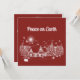White Winter Country Peace on Earth Silhouette Card. Lindo país de inverno, onde cervos descansam perto das árvores, mamãe e bebê urso rolando pela neve e sua própria estrela brilhante, verdadeiramente "Paz na Terra".