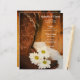 Personalize o encantador Menu de Casamento do País das Daisies Brancas e Boots do Cowboy com os detalhes da refeição que você servirá na sua cerimônia informal, mas elegante, de almoço, chá de panela ou casamento, adicionando a salada ou primeiro curso, a entrada ou segundo curso e a sobremesa ou terceiro curso. Personalize-o com os nomes da noiva e noiva, local de recepção e data da cerimônia do casamento. Este menu personalizado de casamento do tema rancho apresenta uma fotografia floral melhorada digitalmente de um par de botas de cowboy ocidentais de couro castanho, flores de margarida branca e um véu branco de noiva com um fundo de madeira de celeiro de meteoros.