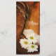 Personalize o encantador Menu de Casamento Ocidental da Daisies Brancas e do Cowboy Boots Country com os detalhes da refeição que você servirá no seu chá de panela do tema ocidental, festa do celeiro do noivado ou recepção do casamento, adicionando a salada ou o primeiro curso, a entrada ou o segundo curso e a sobremesa ou o terceiro curso. Este menu de casamento do estilo rancho personalizado informal, mas elegante, apresenta uma fotografia floral quase melhorada digitalmente de um par de botas de cowboy castanho, flores de margarida branca, véu nobre e madeira de celeiro castanho e curvada.