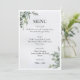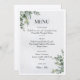 A soft and elegant wedding menu featuring delicate watercolor greenery on a clean white background. The simple layout keeps the focus on your meal details while adding a touch of natural charm. Easily customize the text, fonts, and colors to match your wedding style. Perfect for garden, modern, or minimalist celebrations.