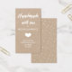 Etiquetas de produto de papel Kraft em tamanho de cartão de visita, onde você pode adicionar seu nome e instruções de lavagem para seu item feito à mão. Feita à mão com amor em um roteiro branco. Um coração bonito separa seu nome com as instruções, que são escritas em branco. A parte de trás apresenta um padrão de ponto chic.