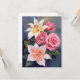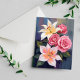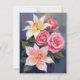 White Lillies Pink Rose Bouquet Watercolor Card