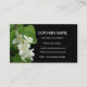 Uma cartão de visita com gosto de Mock Orange Blossom branco sobre fundo preto, com letras brancas, de uma fotografia de Judy Adamson. Pronto para personalizar com seus próprios detalhes.