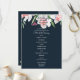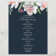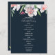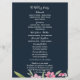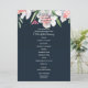 Um programa de cerimônia de núpcias astuto, desenhado com bordas de flores brancas e cor-de-rosa, sobre fundo de marinho escuro. Design duplo com cerimônia na frente e detalhes da festa noiva e obrigado que você escreve no verso. Todo texto está formatado e pronto para que você simplesmente substitua ou remova onde for necessário no botão "Personalizar esta modelo". Você pode personalizar ainda mais nesse link inferior. Coordena-se com o convite formal e uma coleção inteira de artigos de noivado nesta design, escolhendo de 3 cores.