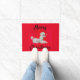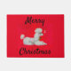 Uma bela imagem de vintage de poodle branco no tapete vermelho.
