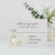 Uma bela placa de RSVP de Casamento Flóral de Cores d'Água com um arranjo de rosas brancas. Mostrado aqui em um fundo de cinza claro, você pode mudar a cor da cinza para qualquer outra cor (incluindo branco) escolhendo "personalizá-la" e selecionando diferentes cores de fundo. Adicione a data RSVP necessária no lugar do texto de exemplo.