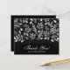 Estas notas pretas de agradecimento são um excelente valor impresso em papel de 110 lb e apresentam um padrão de folha branca, as palavras "Obrigado" e o seu nome em letras brancas chic na frente e a sua mensagem pessoal no verso. Muito obrigado, anotações para seu casamento, chá de panela, chá de fraldas, aniversário, aniversário, formatura ou qualquer evento especial. Os envelopes brancos são opcionais. Mede 4,5" x 5,6", mas você pode escolher entre 3 tamanhos de papel. MAIS CORES na nossa coleção.