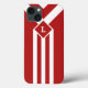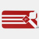 O padrão geométrico do na moda apresenta faixas brancas em negrito sobre fundo vermelho. Três chevrons brancos e vermelhos alternados terminam num diamante vermelho esboçado com branco. Parece uma medalha estilizada pendurada numa fita. O diamante contém um monograma personalizável. Três listras brancas estendem-se do lado oposto do diamante até a borda do design. Os terços externos do padrão são vermelhos. Imagem criada digitalmente. Copyright © 2014 Claire E. Skinner. Todos os direitos reservados.