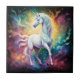Essa imagem colorida enfatiza as qualidades mágicas e etéreas do unicórnio espectral branco, cercado por vibrantes e maravilhosas cores do arco-íris.