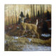Uma pomba branca está assustada pela sua presença. Folhas de queda e uma leve poeira de neve indicam que é no final do outono na floresta. Trabalho de arte realista criada de uma pintura original de óleo pelo artista equino e da fauna selvagem Crista S. Forest.