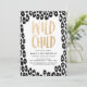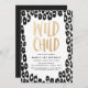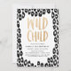 Convite de aniversário e charuto apresentando uma borda de impressão leopardo com "Criança Selvagem" em tipografia falsa de ouro com brilho. Personalize os convites de festas de aniversários de impressão leopardo adicionando o nome, a idade e os detalhes da festa da aniversariante.