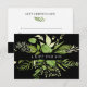 O certificado botânico de presente legante exibe uma linha de solteiro de texto personalizado (mostrado com "um presente para você") formado por folhas e galhos botânicos verdes em um fundo preto contrastante. Adicione o texto desejado do certificado-presente e as informações de contato comercial no verso, enfeitado com uma pequena ramificação verde e folhas. Uma escolha elegante para butiques, salões, maquiadores, cabeleireiros ou qualquer negócio.