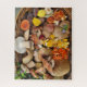 Um enorme cesto de cogumelos selvagens é apresentado nesta maravilhosa quebra-cabeça de serra-de-vidro. Aproveite a montagem de muitas espécies de Boletes, Cantarelos, Bonés de Leite e muito mais com uma rica variedade de cores, formas e texturas neste deleite cheio de fungos!
