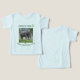 Celebrate a little one’s first birthday with this playful Wild One elephant design. A gentle elephant wearing a party hat stands at the center, with leafy accents framing the “WILD ONE” title above and cheerful balloons floating above the birthday message below. Designed for safari, jungle, or zoo-themed parties, this layout fits toddler apparel beautifully. The name shown is just an example — use the personalization tool to update it for your birthday child.