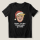 This fun Christmas design features a cheerful Santa-style cartoon character delivering a playful call for holiday peace.