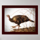 Este poster apresenta um jovem adulto peru selvagem masculino (Meleagris gallopavo silvestris). Ele tem garganta vermelha, pescoço e relógios e suas penas têm áreas de iridescência vermelha, roxa, verde, cobre, marrom, bronze e ouro. Esta foi a espécie de peru encontrada pela primeira vez na natureza pelos Puritanos. Os perus são um símbolo clássico da época de feriados de Ação de Graças.