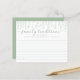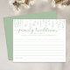 This Wildflower Family Traditions baby shower game card features soft sage green floral artwork with elegant lined sections, inviting guests to share meaningful family traditions from their childhood.