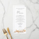 Menu folha única, tamanho: 10,16 x 22,86 cm, papel: Semi-brilho Básico