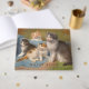 Este design do livro de hóspedes mostra a pintura de Wilhelm Schwar, com um gato-mãe e seus gatinhos (O Gato-Mãe Orgulhoso). O trabalho de arte clássico está na frente e atrás. O texto é personalizável/removível.