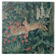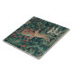 Ornamentado da era do artesão, vintage floral, design de tapeçaria de padrão de arte por William Morris. Par de lebres numa floresta de folhagem estudada com flores silvestres. Recurso Foxluvas. Os verdes vão do médio ao abeto.