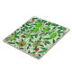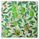 Azulejo cerâmico em um padrão de limões, romãs e pêssegos, com flores, em um padrão de William Morris Art Nouveau - fruta em verde limão e laranja-coral, com folhas verdes, contra fundo de padrão, verde limão e branco