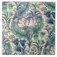 Trata-se de um padrão floral verde, verde, azul e creme de tulipas estilizadas, peonias, crocos e folhas de acanthus no estilo Art Nouveau, baseado no padrão floral de William Morris (1834-1896).