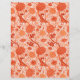 Papel num William Morris, padrão floral, têxtil Jacobeano - elegante, estilizado, crisântemos, girassóis e folhas, em laranja e terracota de coral mole/laranja de ferrugem, sobre fundo branco