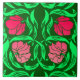 Azulejo cerâmico numa vintage, o padrão têxtil William Morris de flores e folhas estilizadas de pântano - flores num gradiente de cor-de-rosa profundo a macio, com folhas verdes claras de menta, sobre um fundo verde esmeralda escuro