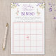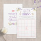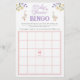 Este cartão de jogo de bingo chá de fraldas apresenta flores silvestres de aquarela, lavanda, margaridas e gansos brancos. Personalize a parte traseira da placa com um nome. Produtos correspondentes disponíveis.