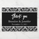 Mini vinho espumante ou etiquetas de vinho pronto para você personalizar com suas próprias informações. A cor damasco escura e branca elegante decora parte superior e inferior desta etiqueta horizontal preta. Personalize o texto da sua recepção de casamento. Excelente para sua mesa de recepção de casamento ou favoritos de convidado.