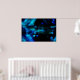 Sombras de Turquesa e Estrelas Azuis de Sapphire, Planeta e Nebulosa no Espaço Exibidas através de 3 janelas em pano (de uma nave espacial?).