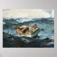 Winslow Homer's "A Corrente do Golfo" é uma pintura poderosa e emocional que retrata um marinheiro solitário num barco danificado rodeado por ondas tumultuosas e tubarões, refletindo a incerteza e o perigo enfrentados pelos indivíduos em meio às forças da natureza. A trabalho de arte, criada em 1899, captura a essência da resiliência humana e o precário equilíbrio entre o homem e o mar indomado, exemplificando a excepcional capacidade de Homero de transmitir tanto o drama do momento quanto os temas mais profundos de luta e sobrevivência.