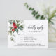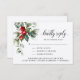 Esta delicada buquê de aquarela tem cores tradicionais de Natal, verde-floresta, verde-oliva e amora vermelha em branco brilhante. Todo o texto pode ser editado de acordo com as necessidades do seu evento. O verso tem um fundo verde de coordenação. Coordena com itens na Coleção de Casamentos de Berry de inverno.