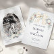 Welcome your guests with style using this elegant winter-themed Photo Save The Date. Featuring a luxurious cream satin bow, delicate snowflakes, and soft floral arrangements in blush pink and dusty blue, this design adds a refined winter-garden charm to your special day. The neutral palette—highlighting white roses, eucalyptus, and pinecones—brings a romantic seasonal touch, perfect for winter weddings, holiday nuptials, and seasonal celebrations. Easily personalize to create a warm and memorable save-the-date announcement for your celebration.