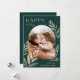 Um design de cartão de feriado chic e elegante com uma fotografia vertical ou vertical do solteiro num formato de arquivo único, embelezado com folhagem botânica finamente detalhada. "Felizes feriados" aparece no canto superior esquerdo, com o nome da sua família no canto inferior direito. Uma escolha refinada inspirada na natureza para as suas saudações de Natal de 2021.