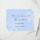 Impresso sobre estoque metálico brilhante com fundo azul macio e flocos de neve brancos. Esta bela maravilha do inverno, RSVP coordena-se perfeitamente com o meu convite para o casamento do floco de neve do inverno.