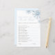 A sweet winter-themed bridal shower game featuring soft snowflakes and elegant script typography. Guests will enjoy answering fun questions to see who knows the bride best. Perfect for a cozy, winter bridal celebration.