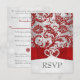 Defina o tom do seu casamento de Natal ou de inverno com este cartão de RSVP de casamento com padrão de damasco brilhante FAUX vermelho e cinza prateado, luxuosamente elegante e acessível, que tem um fundo de flocos de neve brancos sortidos e uma fita e laço vermelhos IMPRESSOS com um par de jóias de diamante e corações entrelaçados com brilho vermelho FAUX. Seria perfeito para um tema de inverno mágico ou para um casamento de Natal ou Réveillon com uma paleta de cores vermelha e prateada. Ele tem respostas divertidas estilo "mad-lib" que pedem aos convidados para responder que estarão lá com sinos, estarão lá sem sinos, estarão... indecisos sobre os sinos, ou com seus pêsames dizendo que não estarão lá, pois ouviram que haveria pessoas usando sinos, ou não estarão lá, independentemente da controvérsia dos sinos. Qual é o melhor momento para usar esse cartão de RSVP engraçado senão em seu casamento de inverno ou de Natal? As pessoas podem até aparecer com sinos! ***POR FAVOR, OBSERVE que não há elementos em relevo neste convite. Tudo é impresso plano. ***POR FAVOR, OBSERVE que se você alterar as fontes ou o tamanho das fontes, isso pode alterar a forma como seu convite é impresso.
