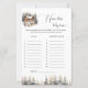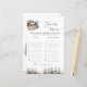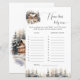 Adicione um toque divertido e festivo ao seu chá de fraldas com este charmoso cartão de jogo 'Name Aquele Baby Tune'. Apresentando uma bela cena de inverno com uma confortável cabana, cervo e árvores cobertas de neve, este jogo é um ajustado perfeito para uma celebração com tema de inverno. Os convidados adorarão adivinhar os artistas das músicas populares que incluem a palavra 'Bebê' no título. Este cartão é uma atividade encantadora que traz um pouco de competição amigável e muitas risadas para o seu evento. É um excelente adicional aos jogos de chá de fraldas e uma maneira maravilhosa de entreter convidados.