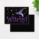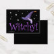O design de chapéu de bruxa de Linda Baysinger Peck, com estrelas e texto roxo que diz "Witchy!" Basta adicionar seu próprio texto no verso, para personalizar. © Linda Baysinger Peck Todos os Direitos Reservados