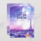 This elegant two-sided RSVP card from the Amour Éternel à la Parisienne collection blends romance and refinement. The front features a dreamy watercolor Parisian skyline with the Eiffel Tower glowing under a moonlit lavender sky, inviting guests to respond by a chosen date. The reverse side offers meal selections and space for dietary notes, all framed by soft pastel hues and graceful typography. Fully customizable text ensures every detail reflects your celebration. A poetic way to gather replies with timeless Parisian charm.