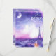 This two-sided RSVP card from the Amour Éternel à la Parisienne collection invites guests to respond with elegance and flair. The front features a dreamy Paris skyline bathed in moonlight, with the Eiffel Tower glowing against watercolor hues of lavender and blush. The reverse includes space for names, attendance, number of guests, special dietary notes, and a personal song request for the DJ—adding a joyful, interactive touch to your celebration. All text is fully customizable, making this card a poetic blend of romance and thoughtful planning.