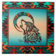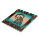 Brilhe a sua casa com este Azulejo Tribal Wolf Cerâmico "Um de um Tipo"! Ele apresenta um Lobo Tribal Americano Nativo Howling na Lua em um Fundo Turquesa e Laranja... cercado por uma Fronteira Sudoeste em Turquesa, Laranja e Preto! Este é um Design de Arte Original "Um dos Tipos" do Artista Kerry Miller.