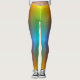 Woman in rainbow gradient leggings with a subtle pattern, from orange at the waist to blue at the ankles. She wears black sneakers, evoking a vibrant, dynamic style.