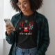 Celebrate the holidays in cozy style with this comfy Bella+Canvas Tri-blend T-Shirt for women. The featured design is a charming reindeer silhouette filled with a trendy red and black buffalo plaid pattern, surrounded by festive snowflakes.