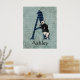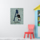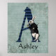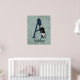 A design de Whimsical para Alice no País das Maravilhas, amantes de todas as idades, apresenta letra maiúscula / inicial A com preenchimento de harlequin preto e azul e ilustração original do Rabbit Branco que foi pintada, em um fundo de cor azul-azul, floral e vírgula angustiado. Personalizar com nome ou outra mensagem