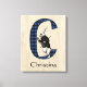 Design de Whimsical para Alice no País das Maravilhas amantes de todas as idades apresenta letra maiúscula / C inicial com preenchimento de harlequin preto e azul e ilustração original do Coelho Branco que foi pintada, em um fundo falso de madeira. Personalizar com nome ou outra mensagem