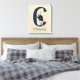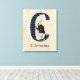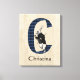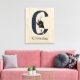 Design de Whimsical para Alice no País das Maravilhas amantes de todas as idades apresenta letra maiúscula / C inicial com preenchimento de harlequin preto e azul e ilustração original do Coelho Branco que foi pintada, em um fundo falso de madeira. Personalizar com nome ou outra mensagem