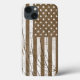 Forte madeira de grunge, design de bandeira americana para proteger o seu iPhone. Esta design apresenta a bandeira dos Estados Unidos da América (EUA) em estrelas e listras em branco que mostram o grão de madeira e textura de rachadura abaixo.