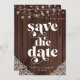 As luzes de corda de madeira russa acenam, salve os cartões de data apresentando um fundo de madeira rústica com cordas de luz piscando e um local de estilo de safra nos cantos inferiores. A palavra casamento é lançada na tipografia rústica e retrógrada ocidental, fazer este é o design perfeito para o seu casamento bô ou country. Entre em contato conosco em cedarandstring@gmail.com se precisar de assistência com o design ou produtos correspondentes.